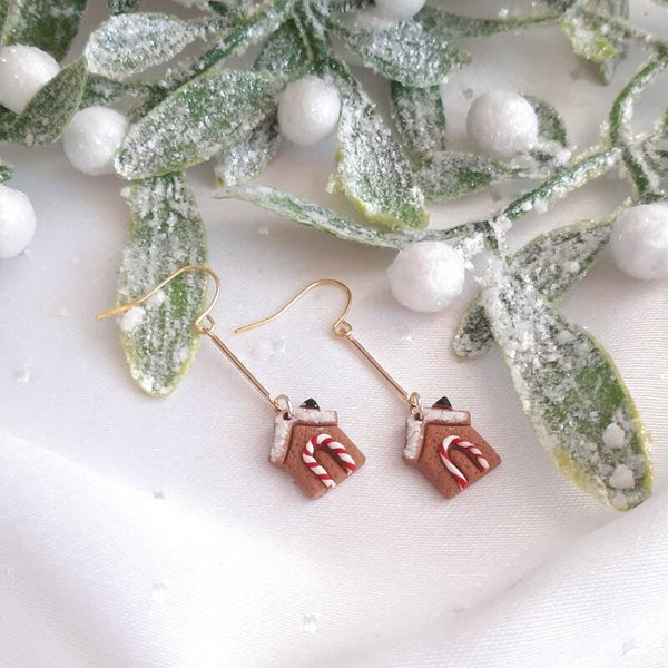 Hängende Ohrringe - Lebkuchenhaus - handgemachte Weihnachtsohrringe